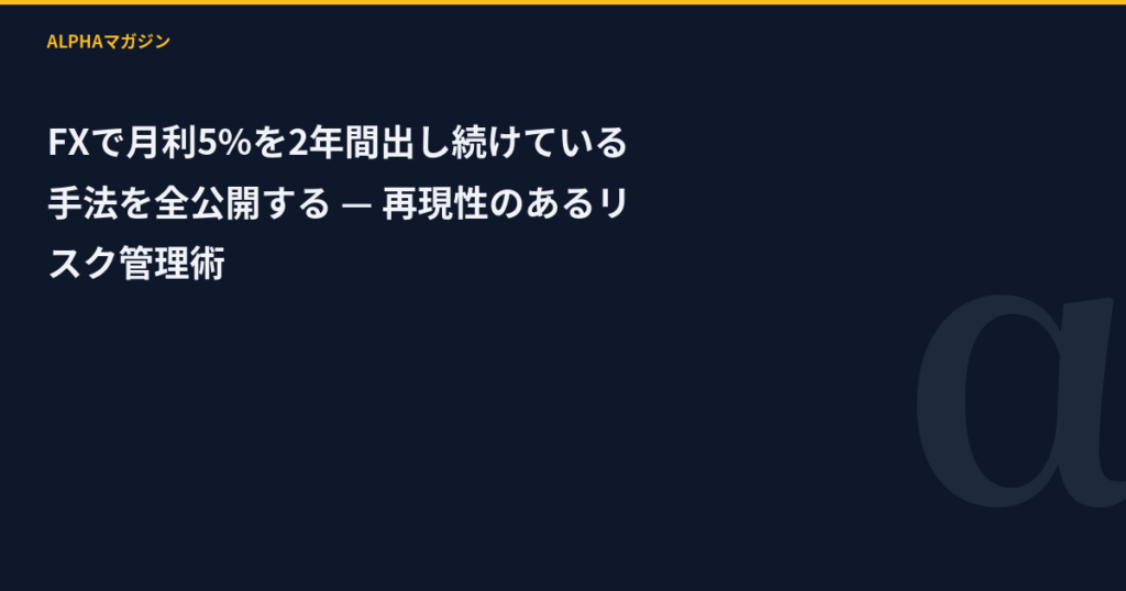 FXで月利5%を2年間出し続けている手法を全公開する — 再現性のあるリスク管理術